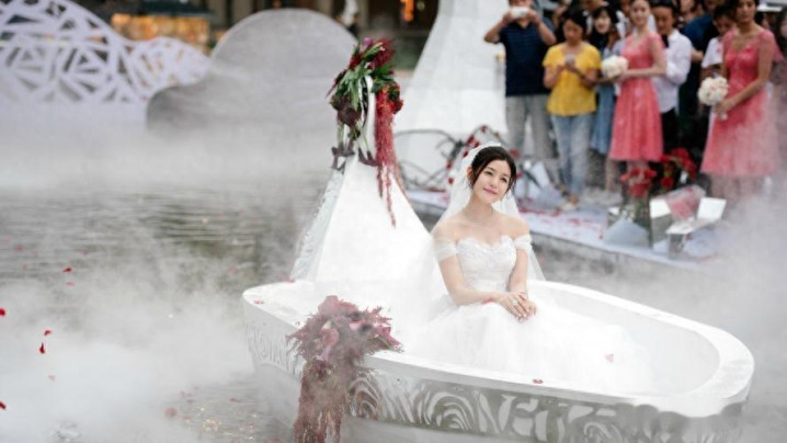 2016年的婚礼更是经典:在北京雁栖湖边,陈晓从船上走来,陈妍希坐在小船上慢慢出现,他掀开头纱亲了她一下。那段动图当时刷屏,很多人都觉得像童话。