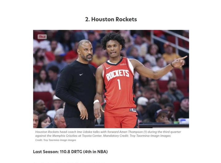 最近,比较权威很喜欢做数据排名的网站《Fadeaway World 》将火箭列为NBA25-26赛季防守实力榜第二名。你是觉得高了还是低了?个人认为是有些“看扁”火箭了。