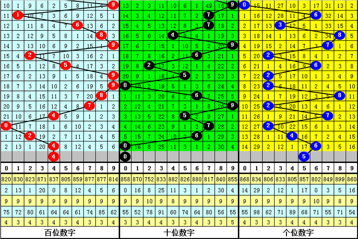 十位分析:上期奖号为0,下降6点,本期关注重号。