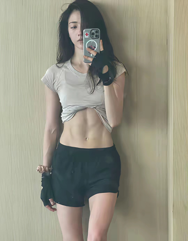 马甲线超明显,是个生命力极强的女人。