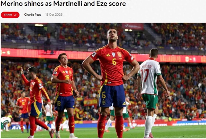 西班牙在世预赛中4-0击败保加利亚,此役梅里诺首发踢满全场,并头球完成梅开二度!这样的话,梅里诺在4场世预赛中已经打进6球!祖比门迪本场比赛同样首发登场,出战了62分钟。拉亚作为替补没有出场。